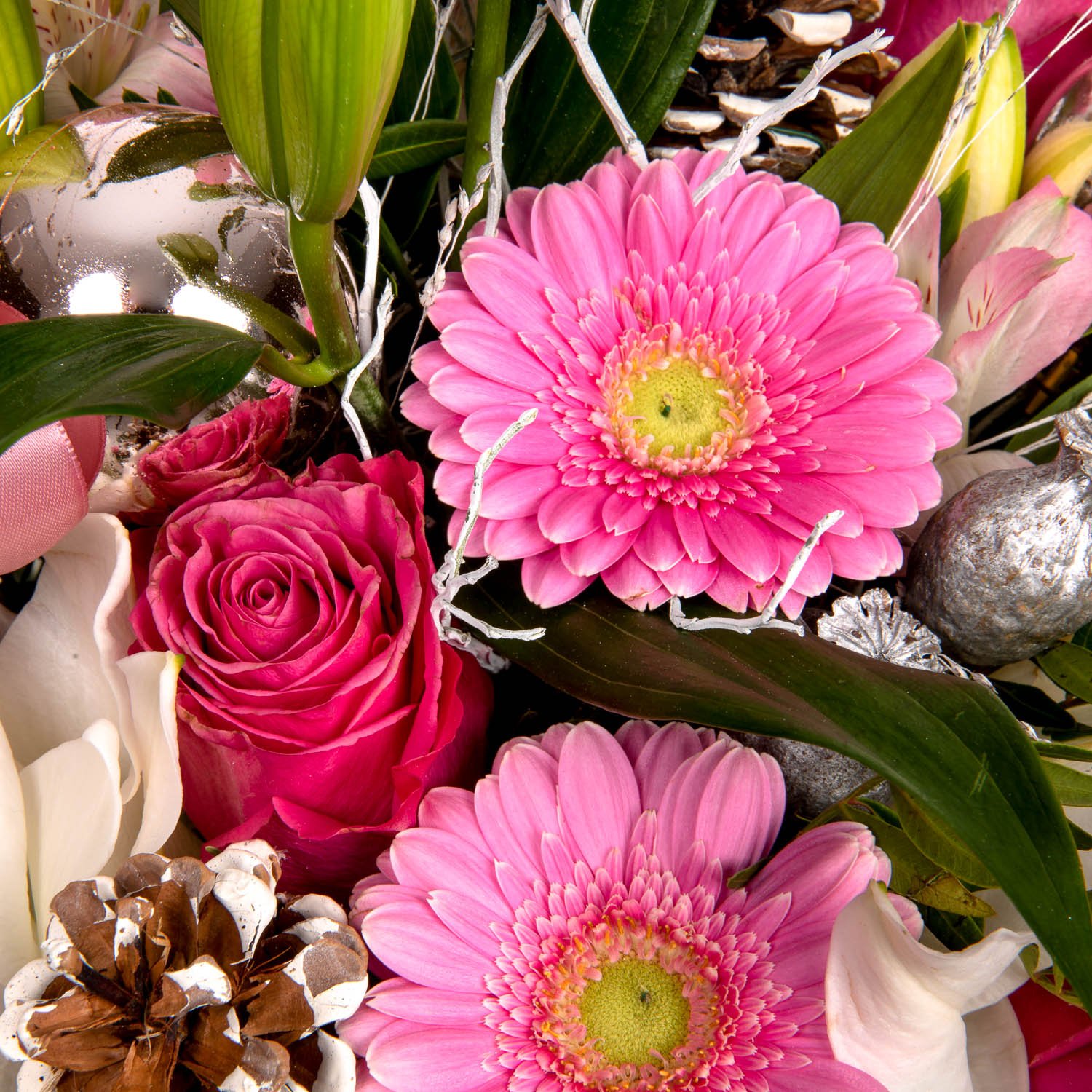 Stargazer Lilies, Mini Gerberas, Roses, Alstroemerias & Decorative greenery (13 stems)