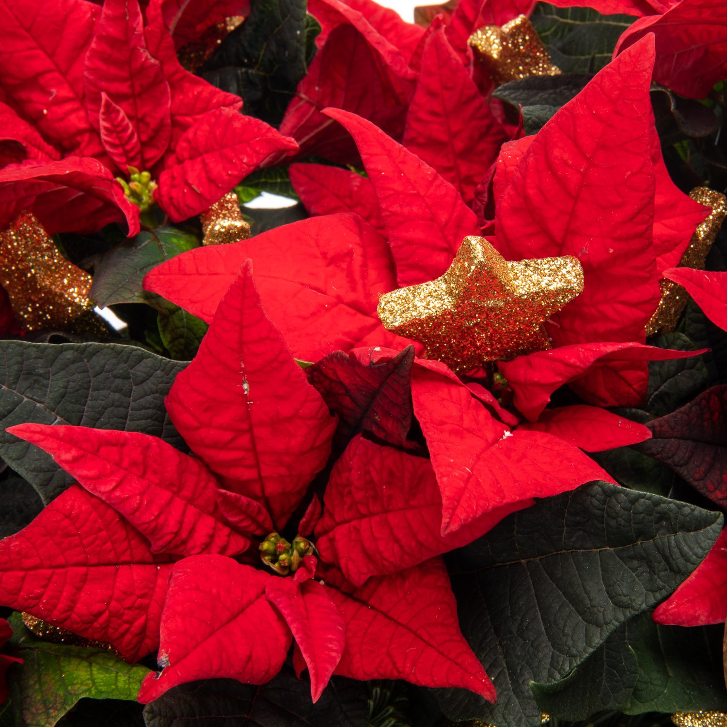 Poinsettia, Basket, Christmas decorations, Christmas green fillers, Decorative bow & Decorative greenery (9 stems)